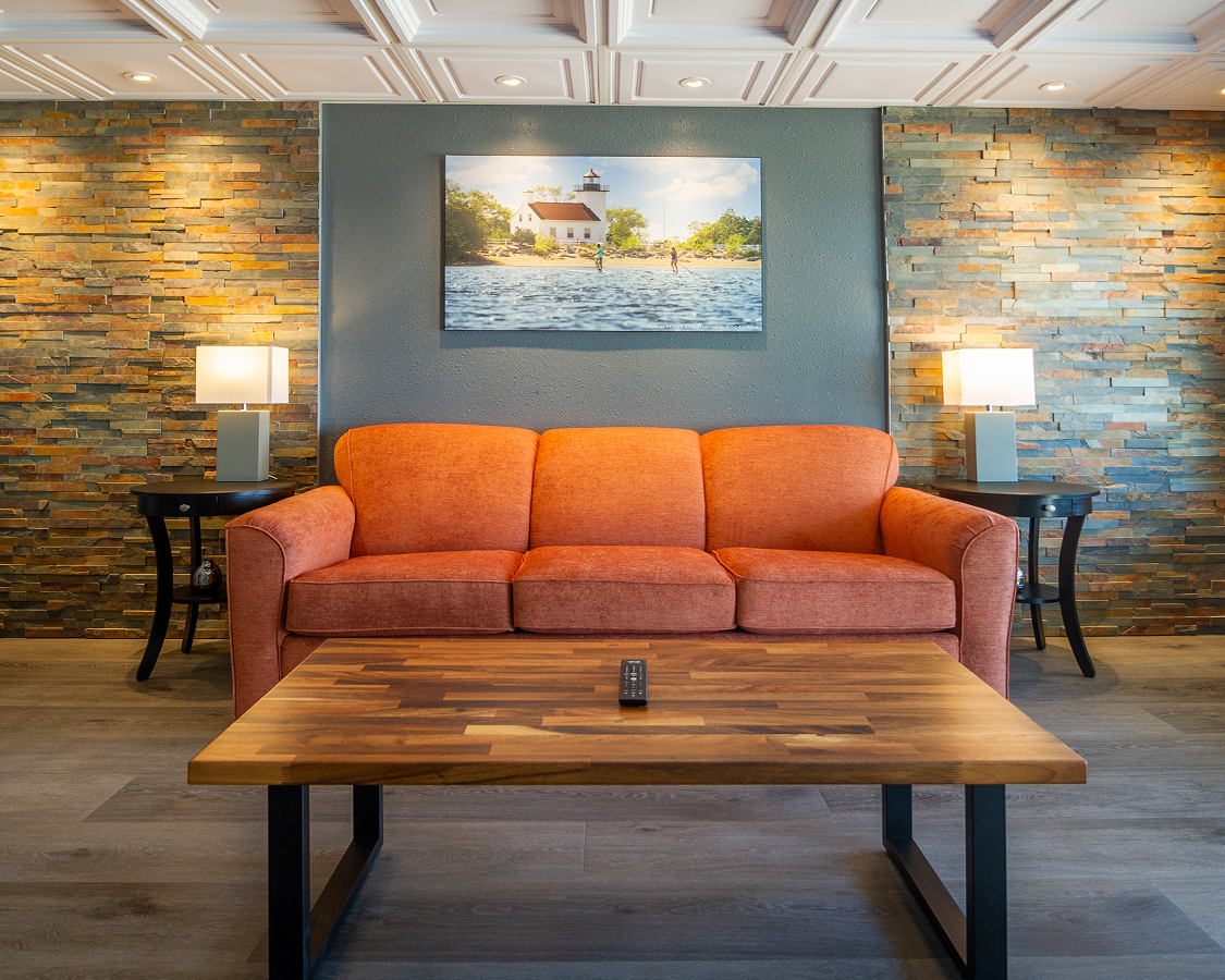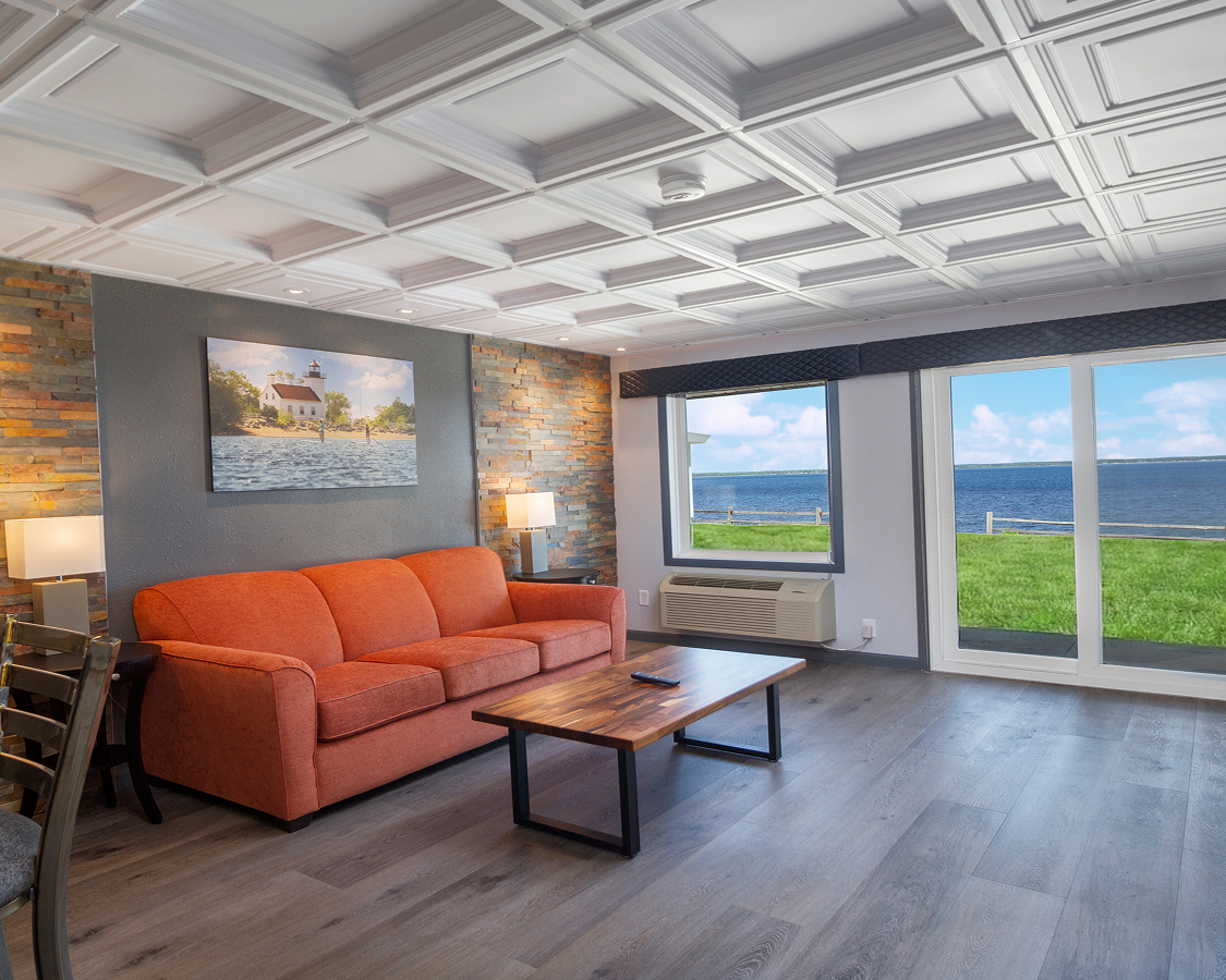 Experience complete convenience with separate living and sleeping areas. Each suite includes two televisions, a sleeper sofa, and a connected full bath, available with either lakefront or west-facing views.