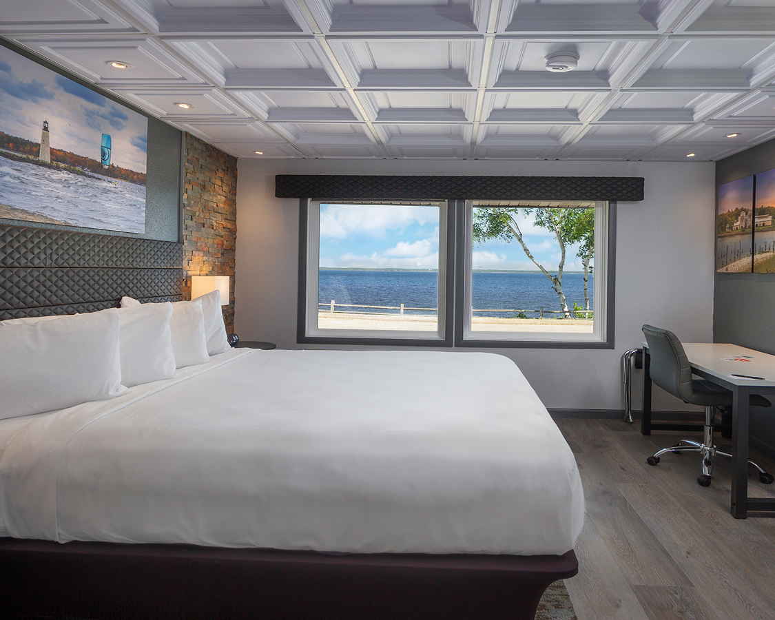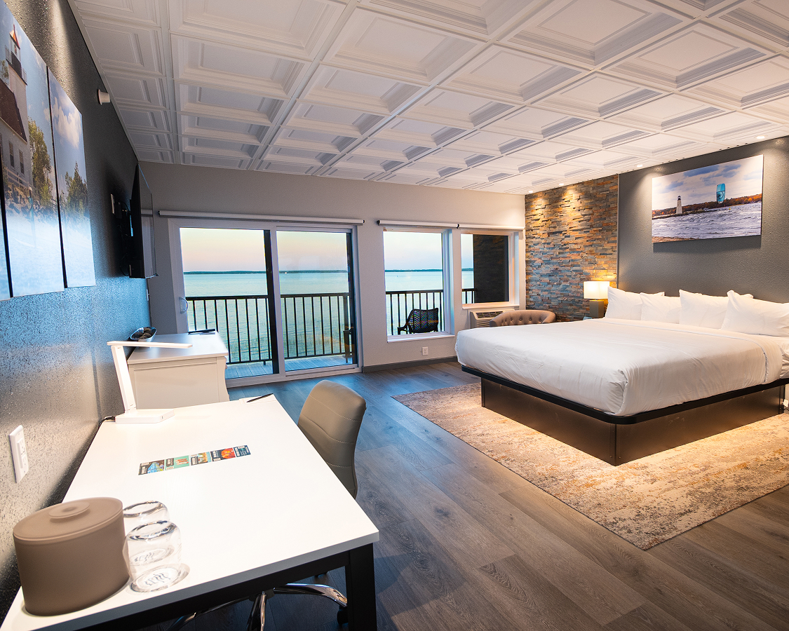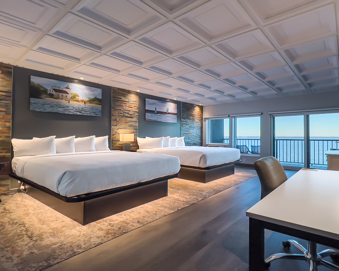 Rise and shine to an unbeatable sunrise over Lake Michigan. These premium rooms feature plush bedding, local photography, and private balconies overlooking the water for a truly experiential stay.